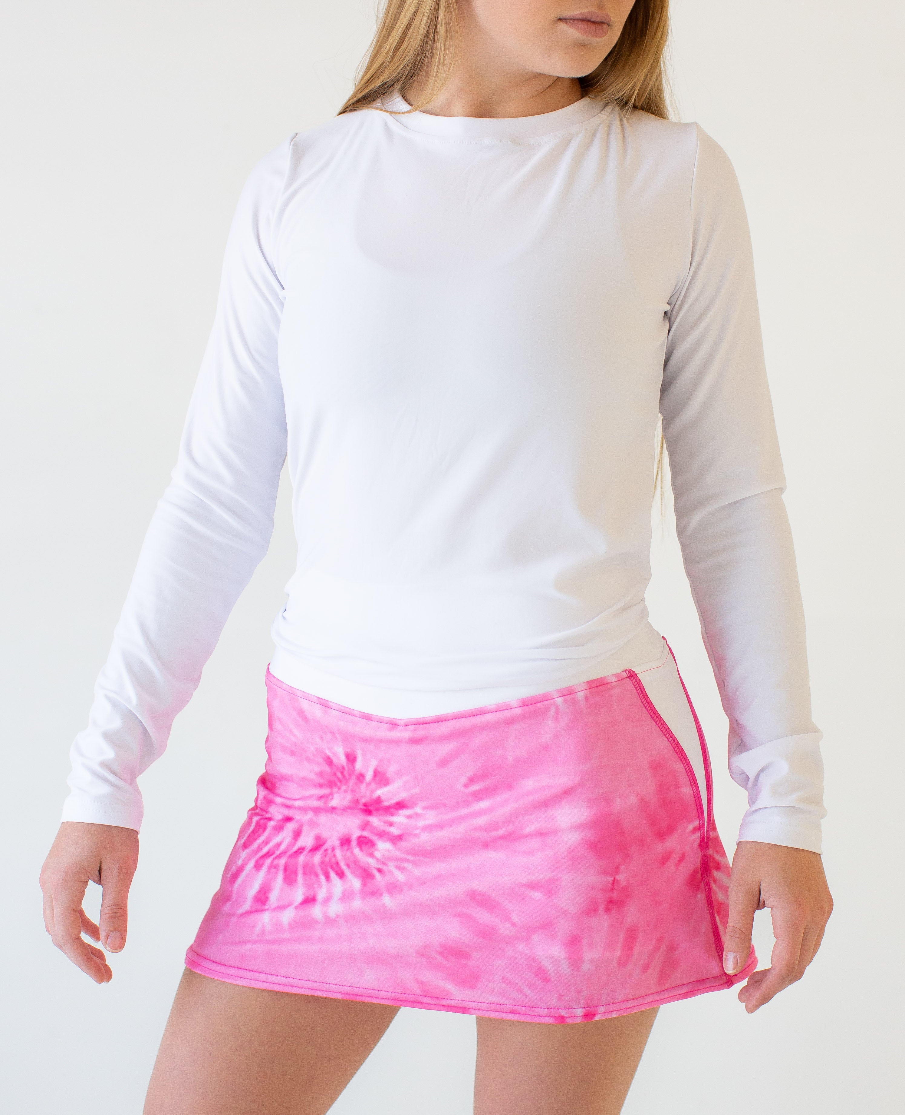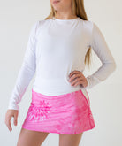 The Jean Skirt has an slight A line silhouette with contrasting darts at the hips. This flattering design enhances freedom of movement when lunging for that drop shot or dink. This style hugs you in the right places but will not smother your beautiful curves.